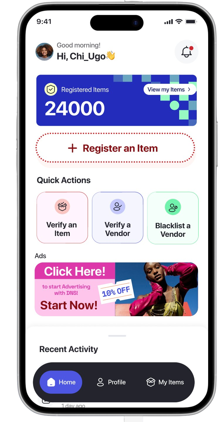 Thinking of buying any item from anyone? Instantly check if an item is flagged, stolen, or already registered by its real owner, before you spend your money.
